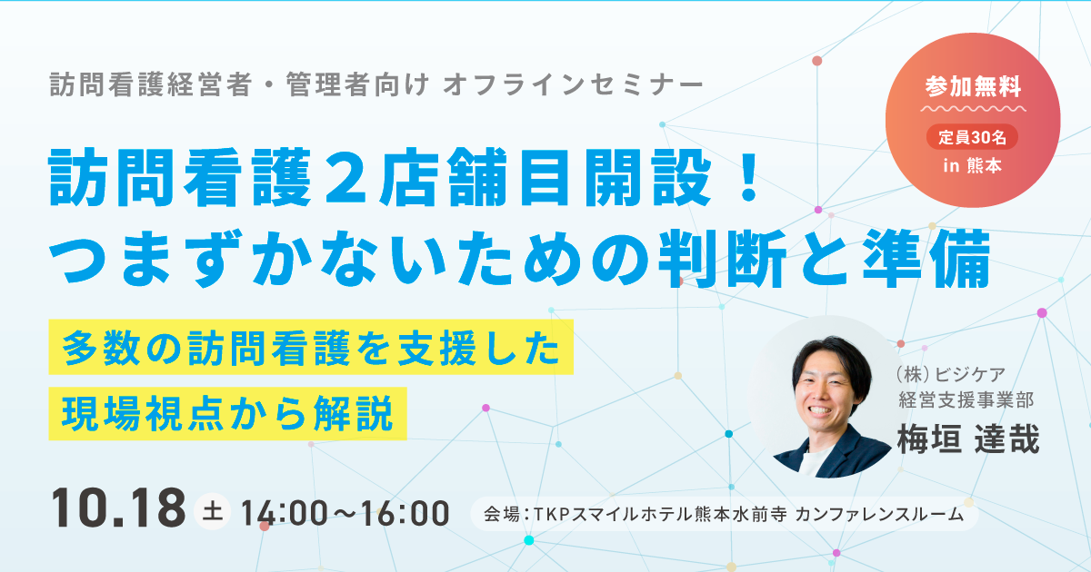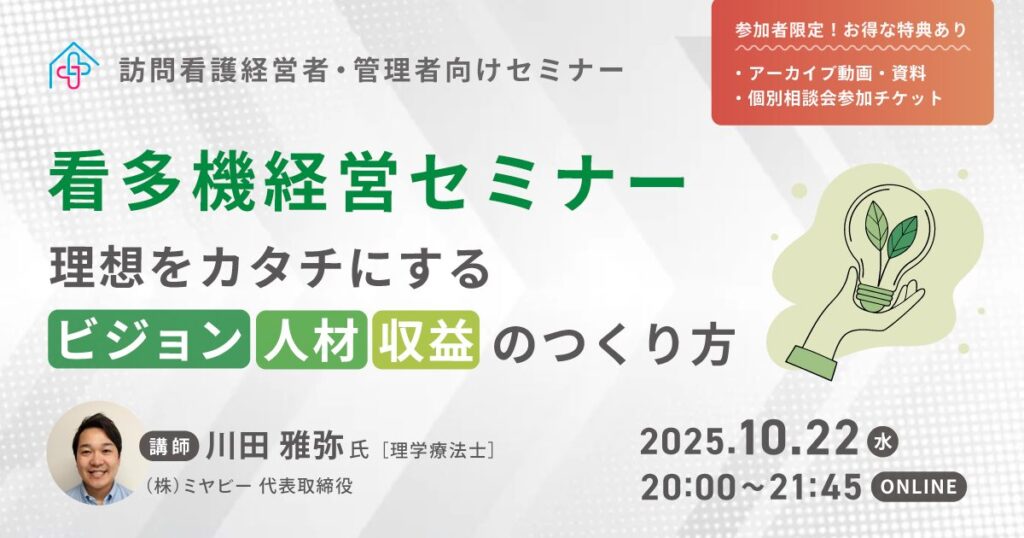 | 2024年4月28日 | 2024診療報酬改定セミナー 訪問看護の経営を強化するために行うべきこと | 梅垣達哉 | 詳細はこちら |